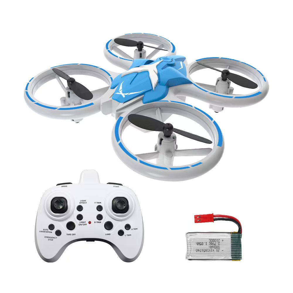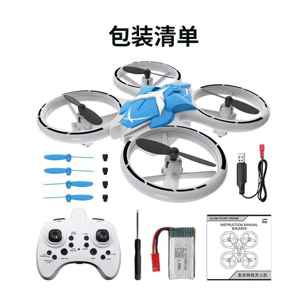 核心功能丰富,支持3D翻滚、无头模式、气压定高,可实现前进后退、左右转向、侧飞等多维度飞行;同时具备速度切换(中高低速)、一键起飞/降落/急停、微调校准及呼吸灯控制等实用功能,操作门槛低,新手也能快速上手。